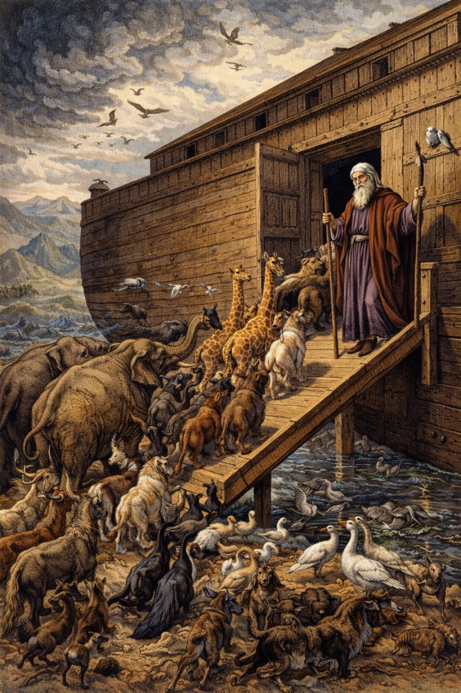 Повеление от Бога, которое слышит Ной, весьма суровое: переступая порог ковчега, Ной понимает, что отрезает жизнь своей семьи от всего того, с чем она была связана ранее. Более того: он знает, что все, оставшиеся вне спасительного ковчега, погибнут. Как можно на такое решиться? В душе человека должен произойти какой-то грандиозный переворот — чтобы потом всю жизнь не обвинять себя в том, что ты сам — выжил, а все остальные — нет.
