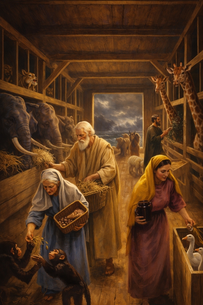 Когда ребенок слышит увлекательный рассказ о всемирном потопе и спасительном ковчеге с разными животными и птицами — у него неизбежно возникает вопрос: а как же они друг друга там не съели? Львы — лисиц, лисы — мышей, мыши — мелких пресмыкающихся? Красивый поэтический ответ даёт в своей поэме «Ной, или гибель первого мира» Йост Ван ден Вондел, великий драматург «золотого века» нидерландской литературы:
