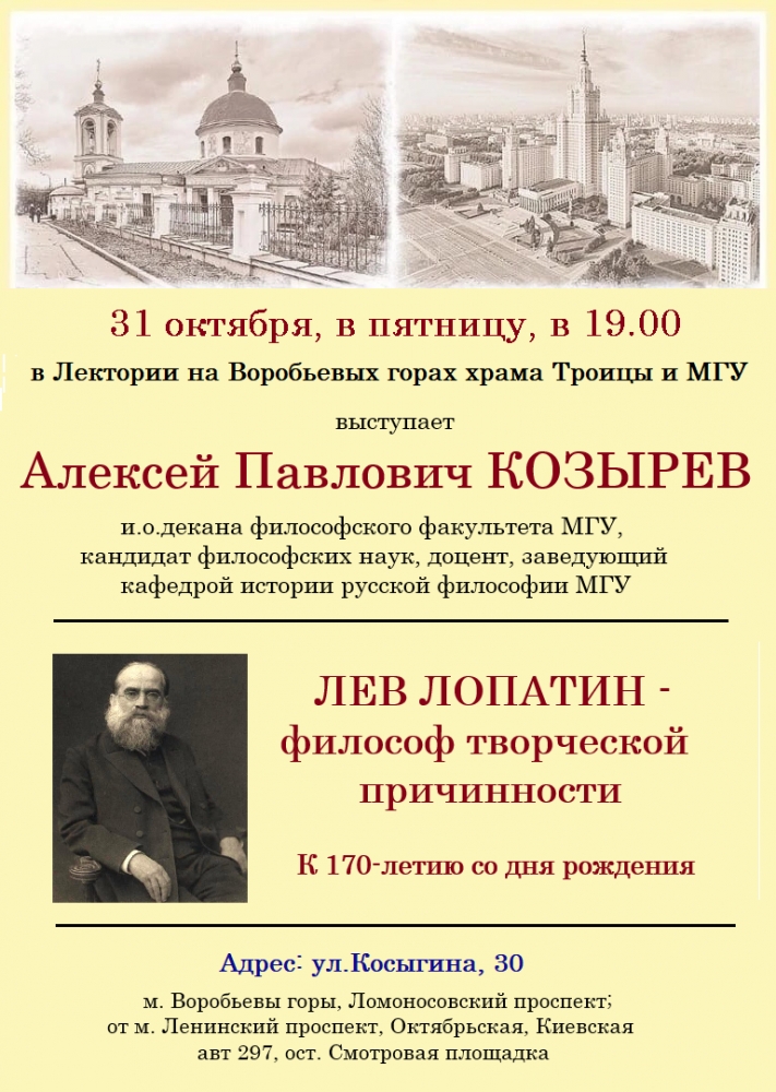 Лекция А.П. Козырева на тему «Лев Лопатин - философ творческой причинности» (к 170-летию русского философа Л.М. Лопатина)