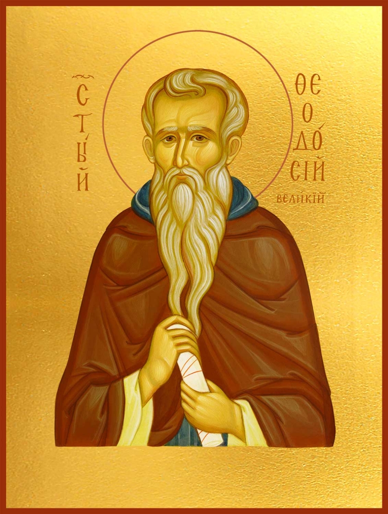 Преподобный Феодосий Великий родился в Каппадокии в селении Могарион. Его родителями были христиане. С детства обладая хорошим голосом, Феодосий был посвящён в церковные чтецы. В юные годы он отправился в Святую Землю в Иерусалим. По дороге в Антиохии он встретился с Симеоном Столпником, который благословил его и предсказал ему будущее пастырское служение.