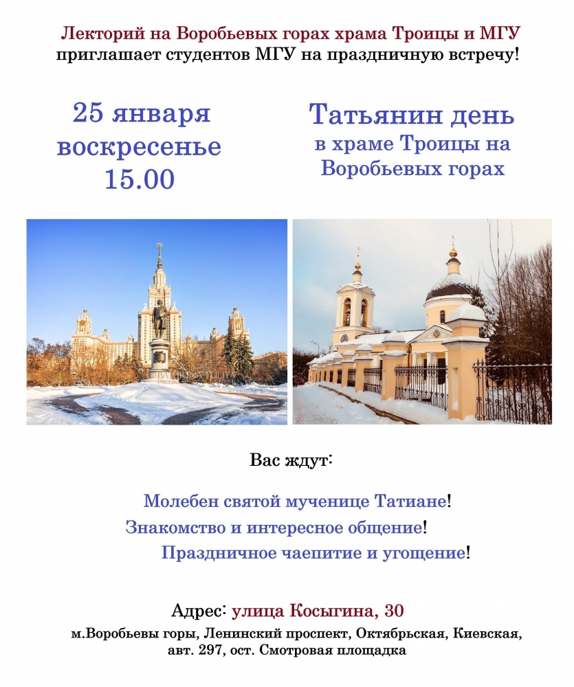 19 февраля, в четверг, в 18.00 в Лектории на Воробьевых горах храма Троицы и МГУ состоится выступление Андрея Игоревича ШАФАРЕВИЧА декана механико-математического факультета МГУ, доктора физико-математических наук, члена-корреспондента РАН, профессора «Неевклидова геометрия: христианский взгляд» (к 200-летию геометрии Н.И.Лобачевского)