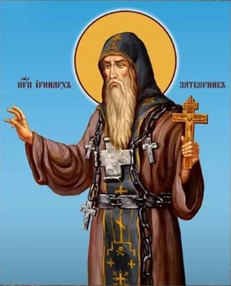 Иринарх Затворник (Иринарх Ростовский, в миру Илья Акиндинович) — русский святой, живший в XVI–XVII веках, затворник Ростовского Борисоглебского монастыря на Устье. В 30 лет принял монашеский постриг в Ростовском Борисоглебском монастыре. Известен своими строгими подвигами: носил тяжёлые вериги, приковал себя цепью к стулу, спал на земле, молился ночами. 25 лет провёл в затворе, терпя насмешки братии. Предсказал Смутное время и разорение Москвы поляками. Поддерживал ополчение Минина и Пожарского, благословил их на борьбу с захватчиками. После смерти святого у его гроба происходили чудеса исцеления. Мощи преподобного Иринарха покоятся в Борисоглебском монастыре. Память совершается 26 января.