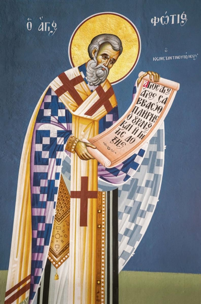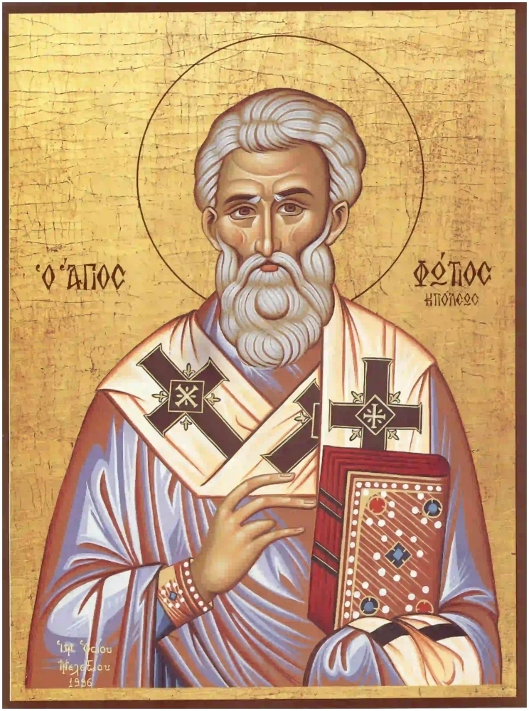 Фотий I — византийский богослов, патриарх Константинопольский, выдающийся интеллектуал IX века. Третий после Григория Богослова и Иоанна Златоуста из Отцов Церкви, занимавших константинопольскую кафедру. Способствовал распространению христианства среди славян, около 865 года крестил болгарского царя Бориса I, благословил миссию святых Кирилла и Мефодия в Моравию. После смерти императора Василия по требованию нового императора Льва VI Мудрого Фотий в 886 году отрёкся от патриаршества. Умер в ссылке в Армении. Православная церковь почитает Фотия как ревностного защитника православного Востока от владычества пап и как учёного богослова, оставившего многочисленные и разнообразные труды, посвящённые обличению заблуждений латинян, опровержению различных ересей, разъяснению Священного Писания, раскрытию различных предметов веры.