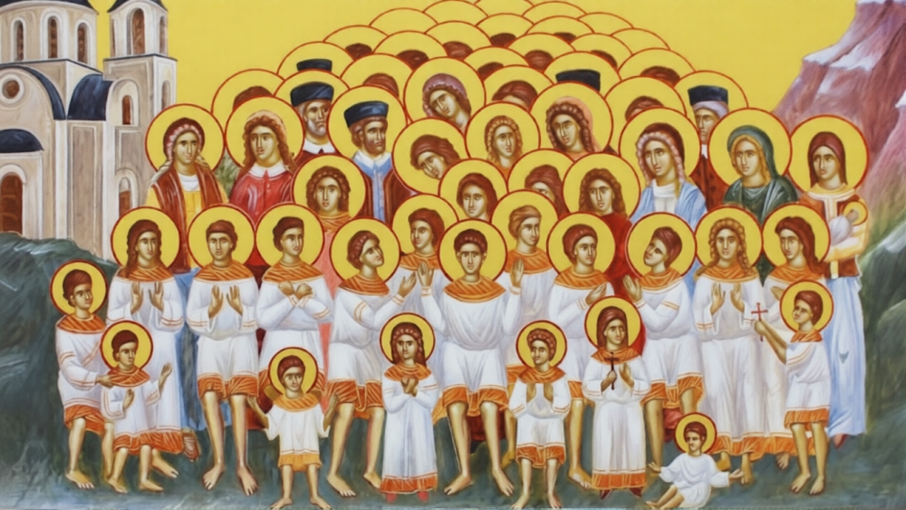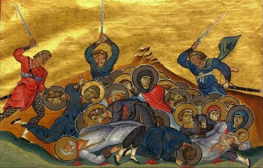 1003 Никомидийских мученика — были слугами четырех сановников, которые вместе со своими женами пострадали за Христа в 303 году при императоре Диоклитиане (284–305). Слуги решили последовать их примеру и тоже исповедали себя христианами пред Диоклитианом. Все они, 1003 человека, с женами и малыми детьми, были изрублены воинами.